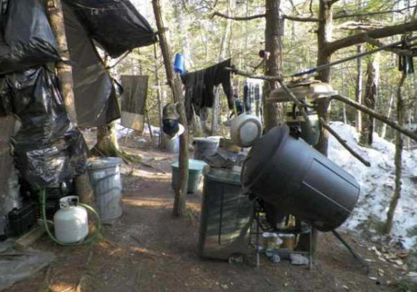 Fotografije iz otvorenih izvora Lokalni stanovnici shvatili su da je u šumskom pojasu neko se krije jer su njihove kuće redovno pljačkane. Knight Napravio je stotine hakova u nekoliko decenija. Ukrao je vreće za spavanje, odjeća, limenke s propanom, baterije za voki i takođe ogromna količina hrane i alkohola. Vitezovo hapšenje tvrdio je da su naočale njegovo jedino vlasništvo, predstavnici zakona kasnije su pronašli utočište i sve ostalo ukraden. Kad su čistili njegov kamp, dvije su kamione bile prepune stvari. Knight je proveo vrijeme u šumi igrajući se Nintendo Gameboy, meditirajući prevrnuta kanta, gledanje televizije, zimi vatra, čitanje ukradene knjige i časopise, kao i napitak i slušanje radija.