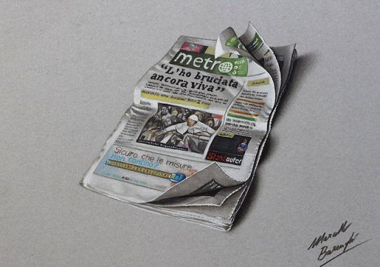 Marcello Barenghi je poznati talentovani ilustrator i grafički dizajner koji živi u Italiji. Majstorski Koristeći sjene i naglaske, Talijan stvara nevjerojatno realni crteži najjednostavnijeg i najpoznatijeg za naše oči stvari. Gledajući njegov rad, ne mogu ni da vjerujem u to što su stvorili koriste se obične zalihe boja koje su jednostavne može se kupiti u bilo kojoj trgovini koja je specijalizirana za prodaju tiskanice.
