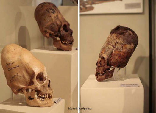 Fotografije iz otvorenih izvora Vrlo je teško utvrditi doba ovih godina lubanje, kao i njihovo porijeklo. Neke od njih su uočljive međusobno se razlikuju. Čini se da oni pripadaju različitim biološkim vrstama, pomalo podsjeća na moderan čovjek. Velike veličine i neobični oblici različitih lubanja. Mogu se podijeliti u četiri grupe: stožaste (ili piramidalne) lubanje, u obliku bundeve, ne baš ispravan oblik i takozvana proto-ljudska. Verzije Ali, koja bi živa bića i dalje mogla imati takva neobične glave? Jedna od verzija naučnika je da je u ljudi iz antike svjesno su deformirali lubanje odojčadi primjenom razni uređaji. A u stvari prije mnogo nacija svijeta Nedavno je postojala okrutna tradicija promjene oblika glave deca. Izduženi oblik glave smatrao se lijepim. Deca sa djetinjstvo čvrsto vezao glavu u čelo i sljepoočnice konopom ili zavojenim daskama. Zanimljivo je da je takav običaj postojao. od različitih naroda, geografski udaljenih jedan od drugog. Naučnici pronađite izdužene lubanje u Egiptu, Meksiku, Peruu, Malti, sjevernom Iraku i Siriji. Tradicionalno slične promjene lubanje povezan s običajima ljudi koji pripadaju kastama vladara ili svećenici.