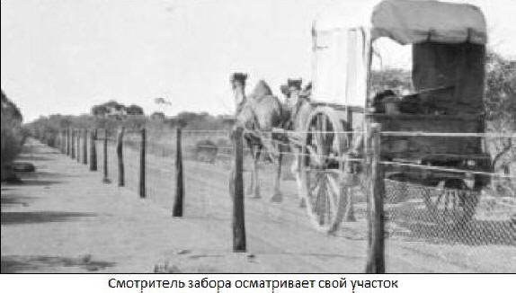 Godine 1907. sagrađena je ograda. Tri linije odbrane (ukupna dužina 3253 km.) Prešao je kontinent s juga na sjever. Uz ogradu asfaltirao je zemljani put kojim su zaposleni patrolirali posebno kreirana usluga. Opis posla glasi: ograda je škljocnula – poravnajte, pronašli smo kopanje – idi spavati, ugledala zeca – ubij ga bez milosti.