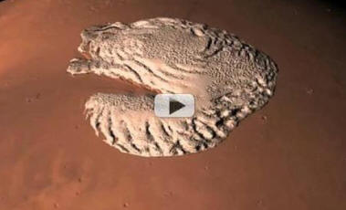 Danas svako može učiniti fascinantno obilazak površine zaleđenog Severnog pola Marsa, gledanje nove 3D animacije kreirane pomoću europskog Svemirska agencija (ESA). Video zasnovan na pouzdanom podaci primljeni od svemirske letjelice ESA koja se nalazila na orbitira Crvenom planetom deset celih godina. Ledena kapa Mars je vrlo sličan snežnom pokrivacu stubova naše planete, međutim, za razliku od zemlje, koja se sastoji od ledene vode, sastav leda Mars uglavnom dolazi u ugljičnom dioksidu, koji znamo kao suvi led. Crvena ledena kapa Crvene planete ima prečnik oko 1000 kilometara, što je otprilike jednaka širini ledene plohe Grenland na svom najširem mestu. Mars Sjeverni pol sastoji se od mnogih tankih slojeva leda pomiješanih sa prašinom. Video je vrlo lijepo prikazan kanjon Hasme Boreale Podijeljeno je na pola duboko brazda duga oko 318 km; ostale izgledaju ne manje spektakularno, manji otkloni u ledenom pokrivaču, raspoređeni u obliku spirale. Naučnici sugeriraju da su ta odstupanja nastala kao rezultat snažni naleti vjetra koji preovladavaju na ovoj planeti.