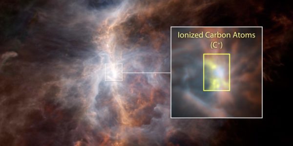 Analiza podataka o maglici Orion, najbližoj regiji koja stvara zvijezde na Zemlji, omogućila je astronomima da proučavaju čestice maglice Orion koje sadrže ugljenik i njihov uticaj na stvaranje masivnih zvijezda. Uspoređujući broj, temperaturu i kretanje molekula ugljik-vodonik (CH ili metilidin), pozitivno nabijenog jona ugljik-vodonik (CH +) i matične čestice u odnosu na njih – pozitivno nabijeni ion ugljika (C +), došli su do vrlo nedvosmislenog zaključka: